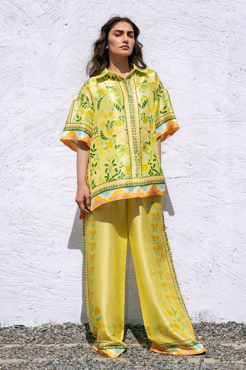 Women’s Yellow & White Stripe Papaya Print Co-ord Set