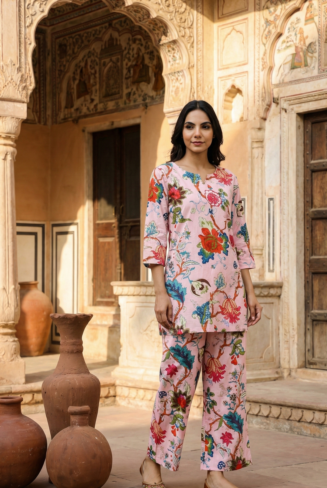 Pink Floral Cotton Coord Set