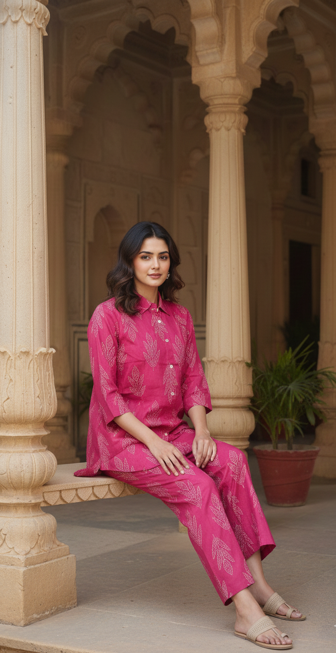 This Cotton Printed High Low Cord Set is made with 100% cotton fabric, ensuring comfort and breathability. The innovative high low design adds a unique touch to your wardrobe, while the cord material provides durability and long-lasting wear. Elevate your style with this versatile set.