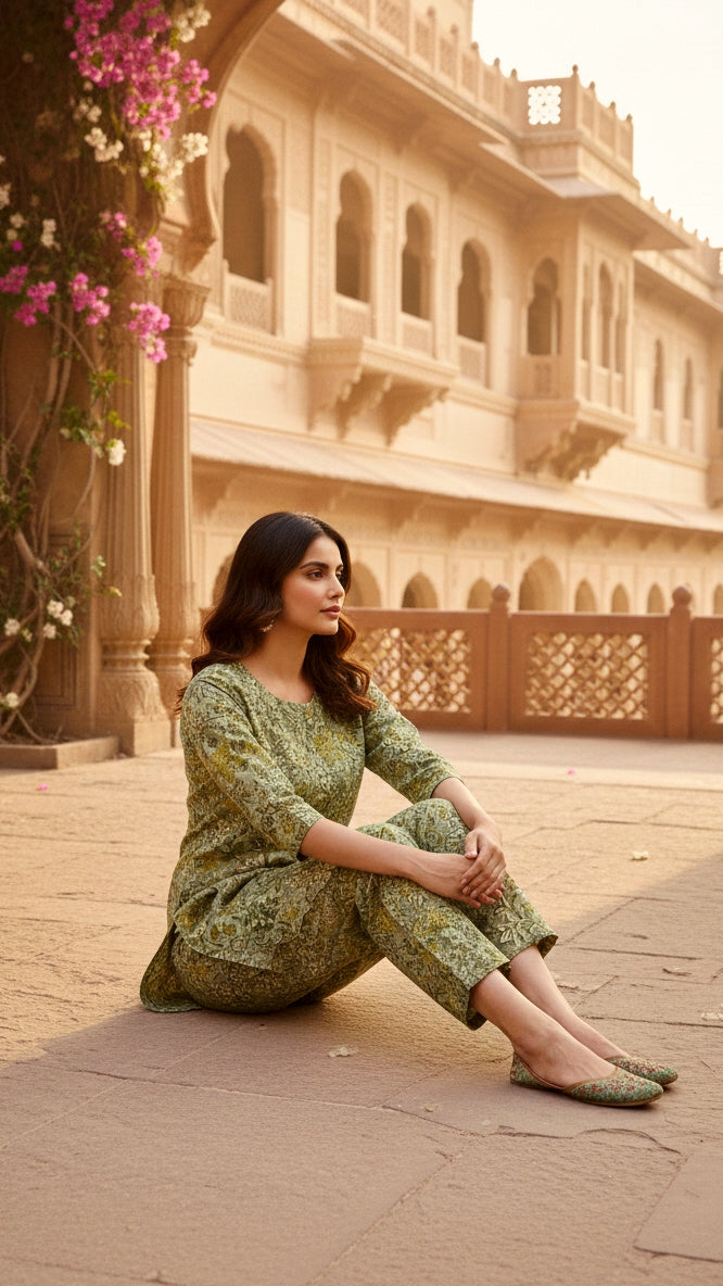 Brighten up your day with this floral garden cotton co-ord set, featuring vibrant flower prints. Designed with a comfortable top and trousers, this set is perfect for relaxed days at home or casual wear.