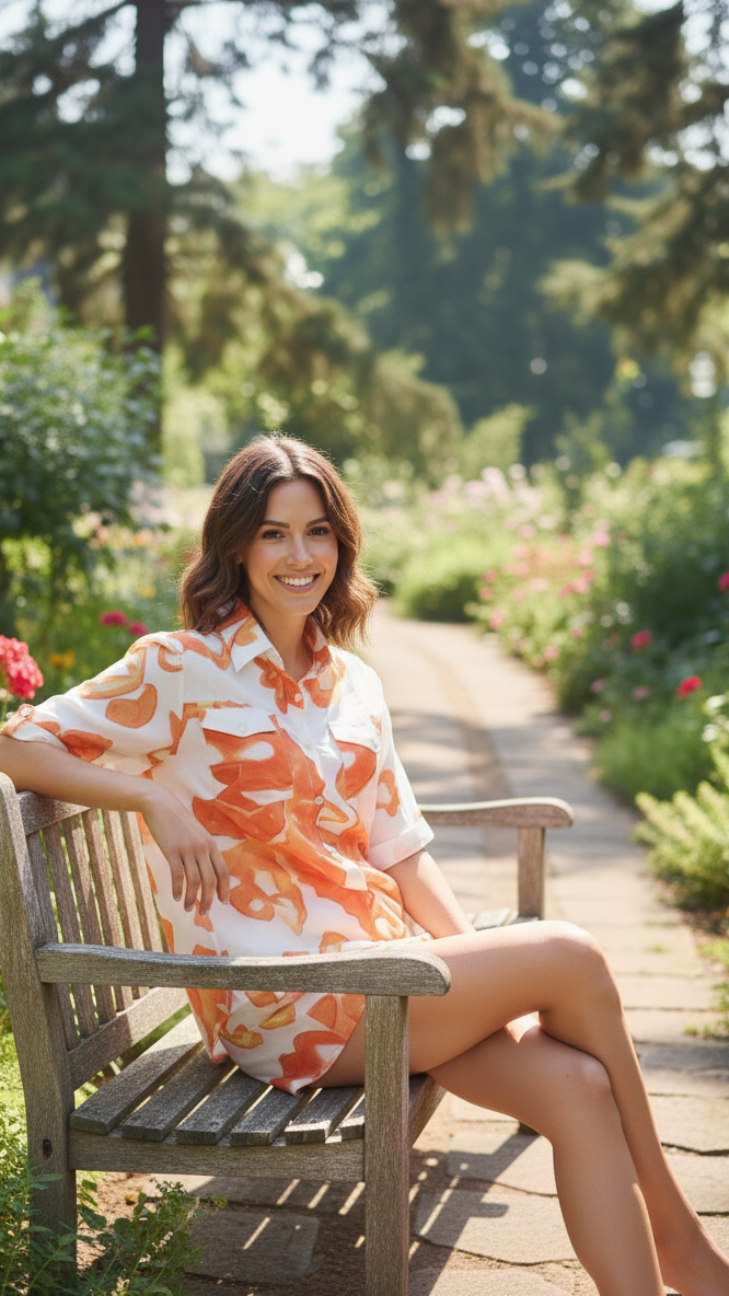 Co-ordinating Set: Matching short-sleeve shirt and shorts.
