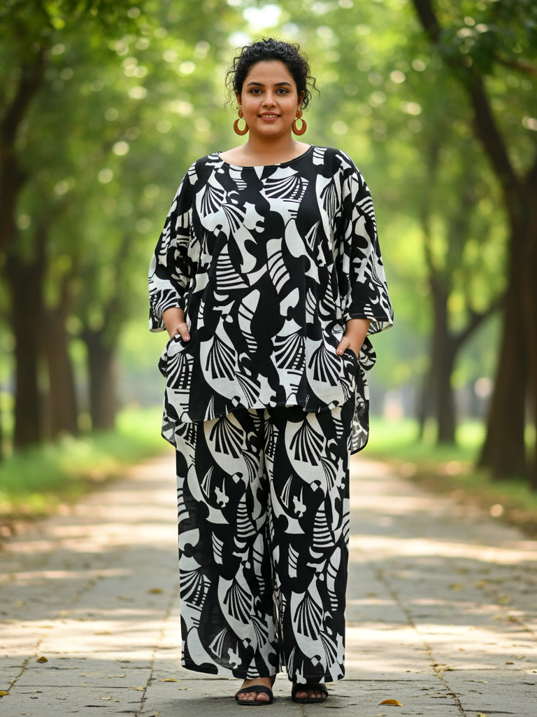 Plus Size Black Abstract Cotton Co-ord Set – Comfortable Everyday Wear