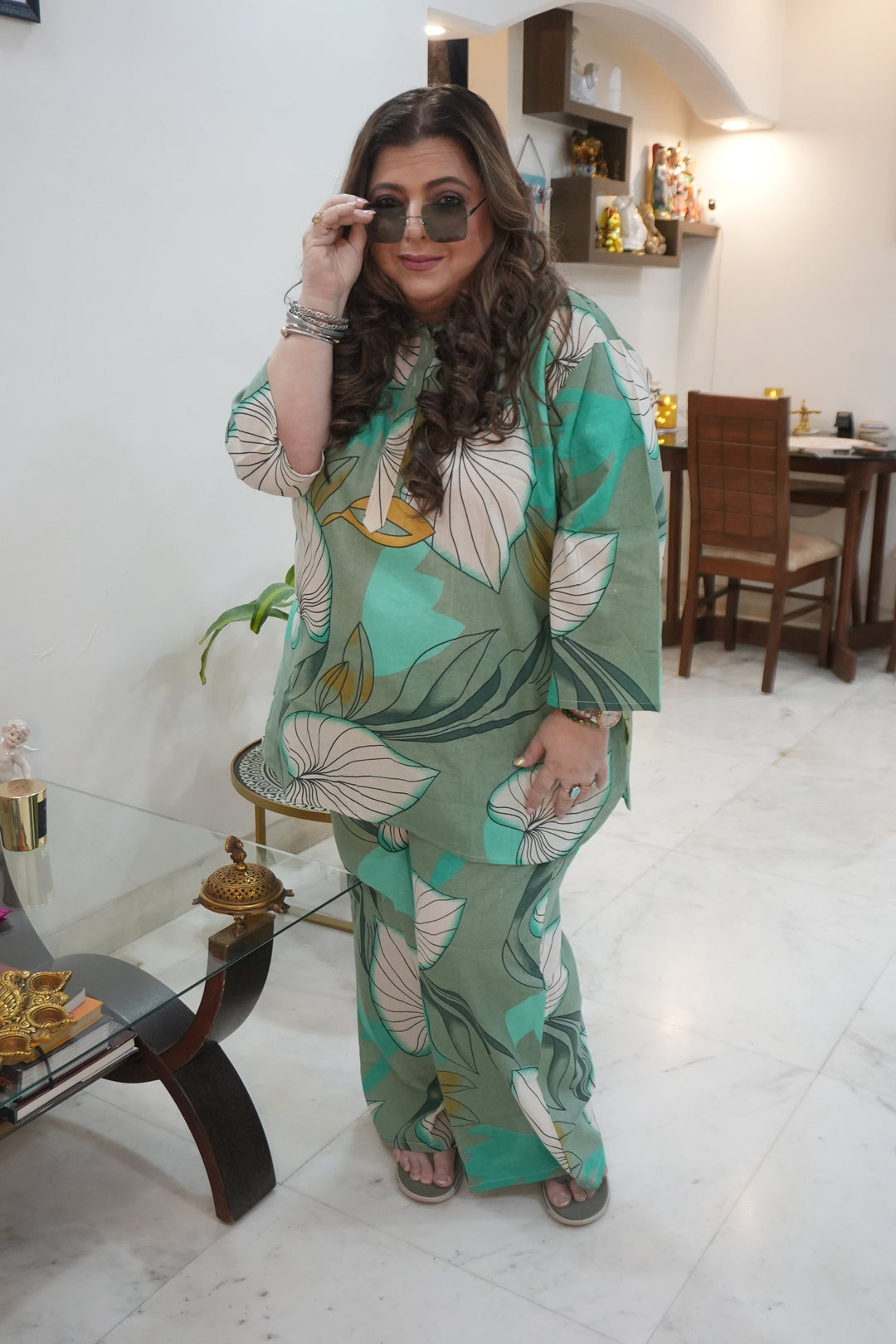 Plus Size Green Printed Cotton Co-ord Set – Comfortable Everyday Wear