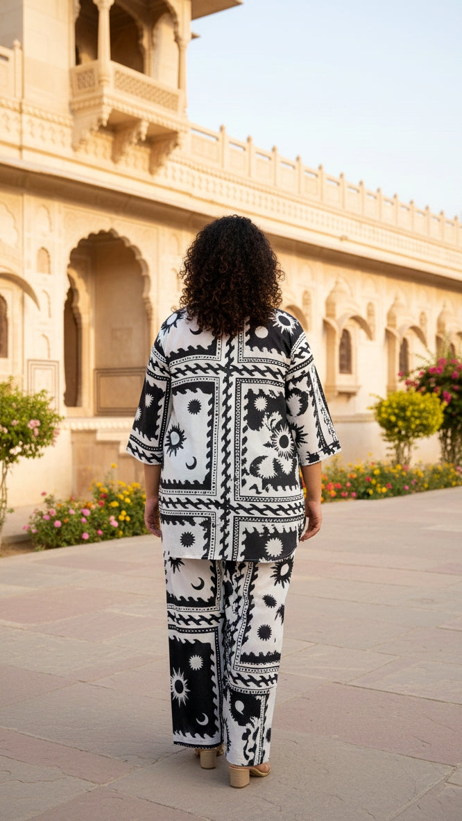 Plus Size Black Abstract Cotton Co-ord Set – Comfortable Everyday Wear