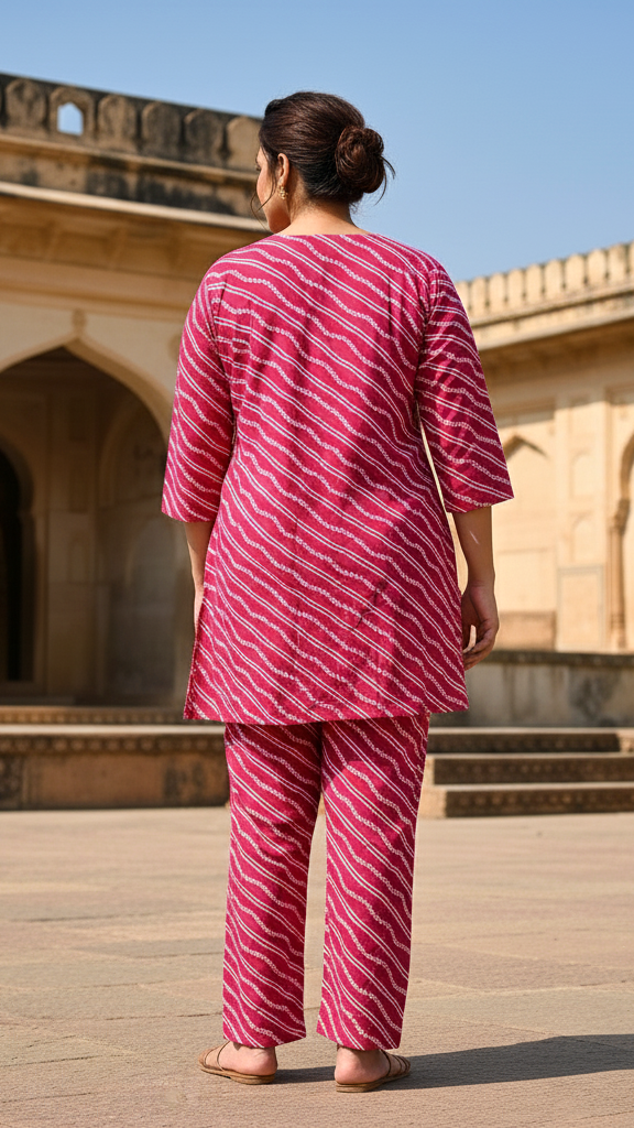 Step out in confidence and comfort with this plus-size pink handblock printed cotton co-ord set, thoughtfully designed for women who love style that moves with them. The soft cotton fabric keeps you cool all day, while the relaxed fit ensures a flattering and easy silhouette.