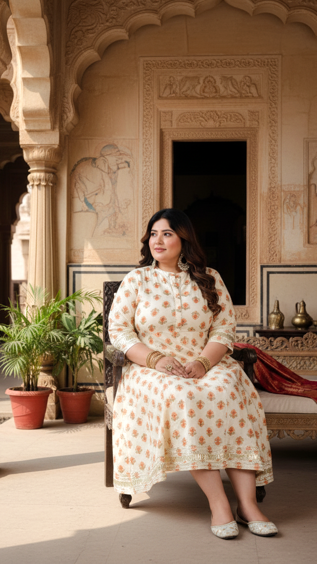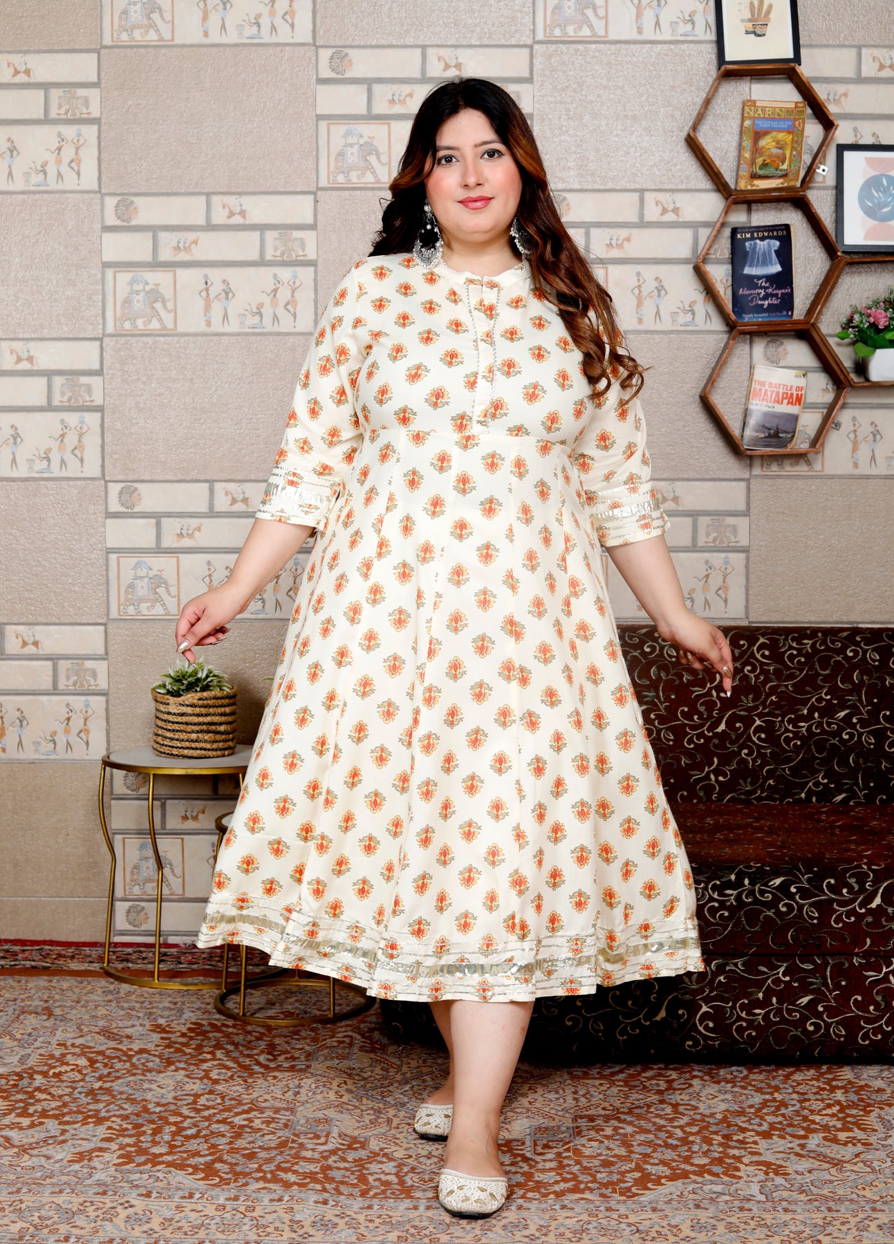 Plus Size White Cotton Blend Floral Print Gown (B32-White)