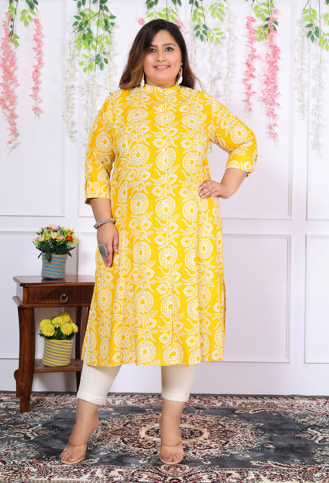 Women Printed Cotton Straight Kurta (B11-Yellow)