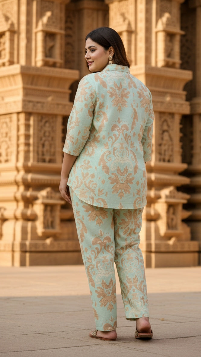 Plus Size Ikat Sage Mint Cotton Co-ord Set – Comfortable Everyday Wear for Women