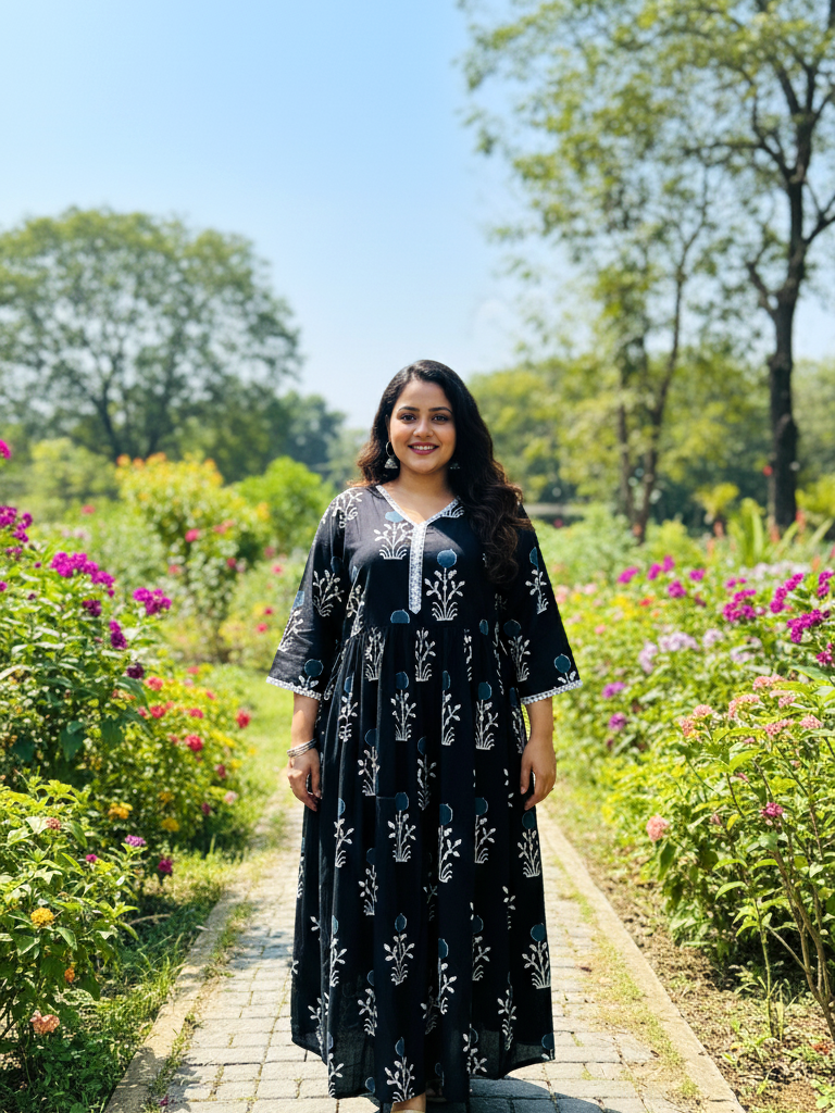 Grey Cotton Comfort Plus-Size Gathered Ethnic Dress