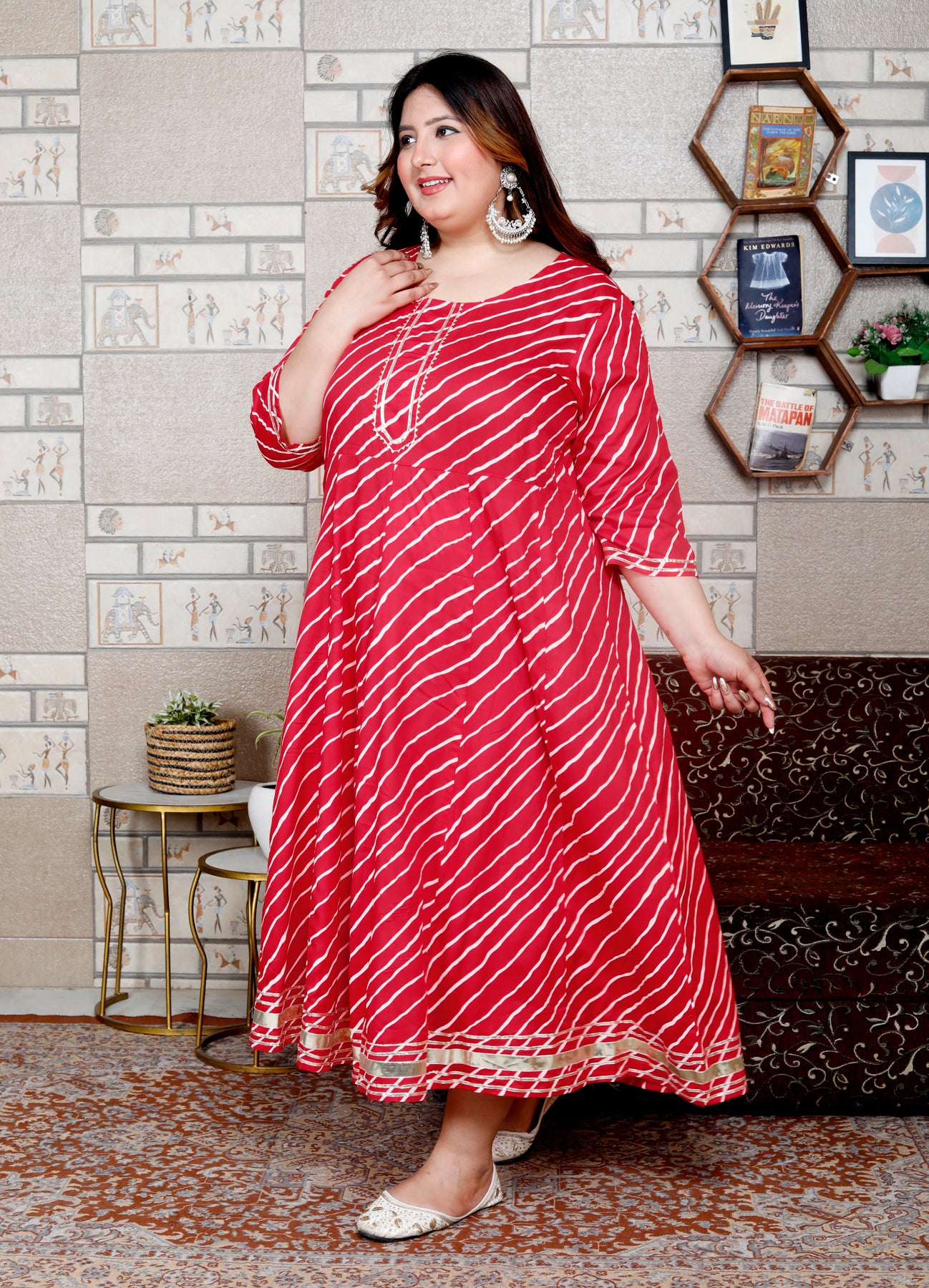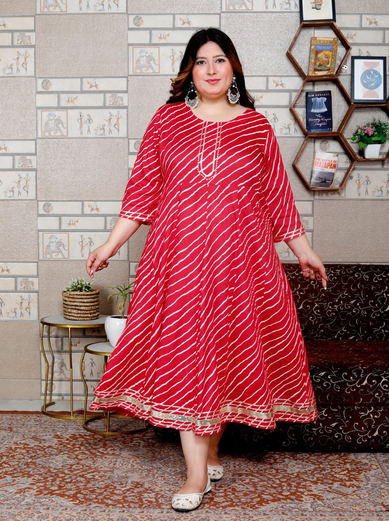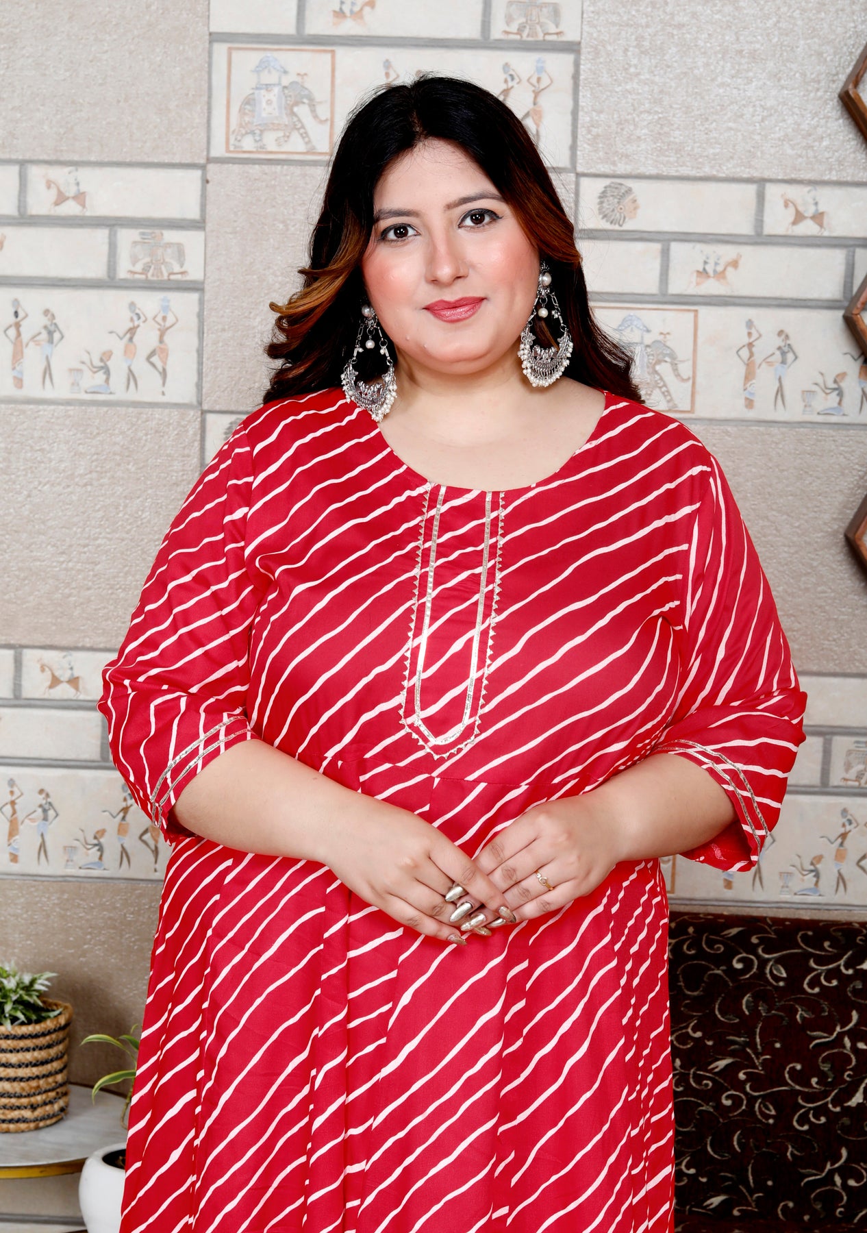 Plus Size Red Cotton Blend Lahariya Print Gown (B29-Red)
