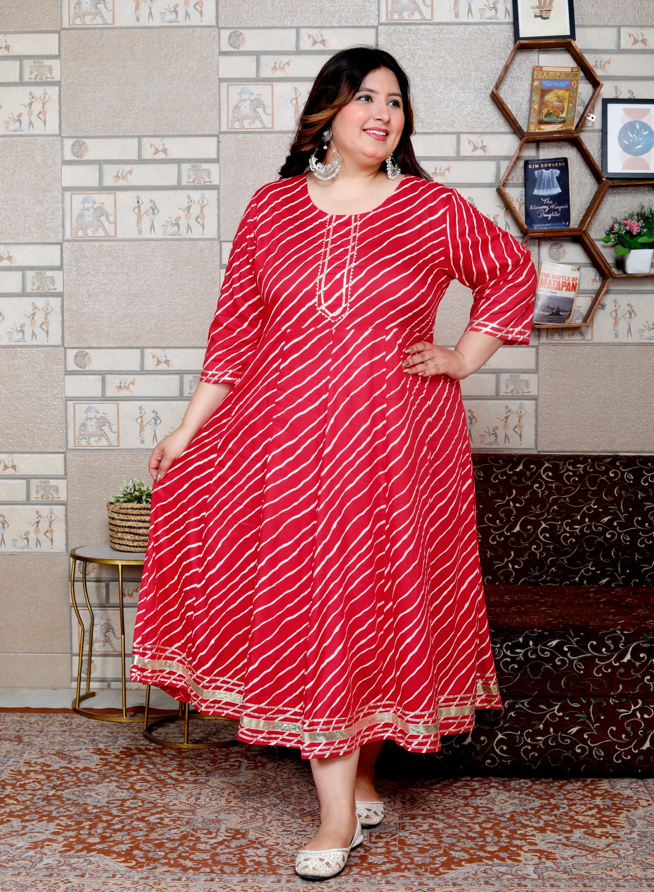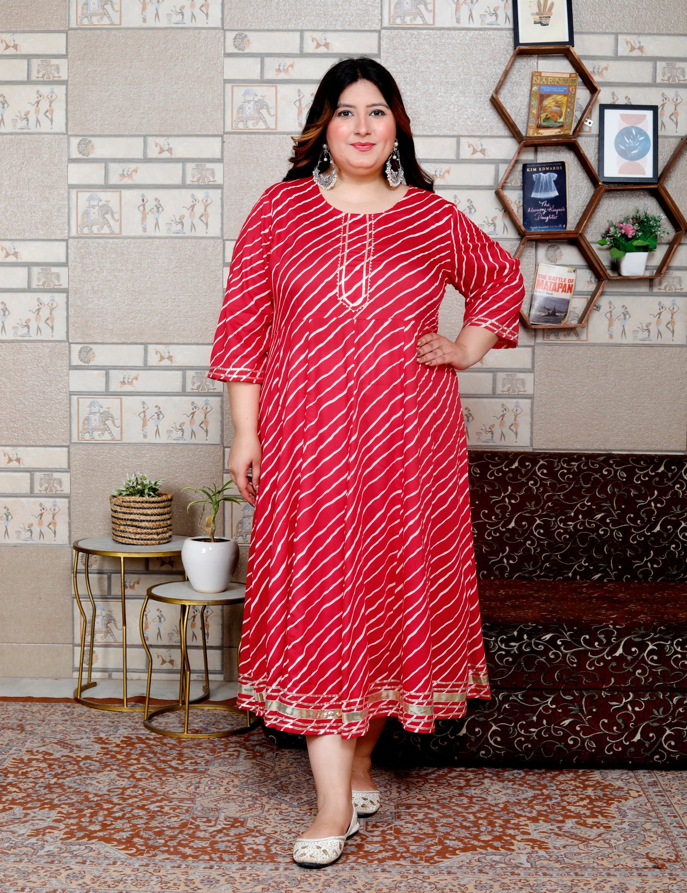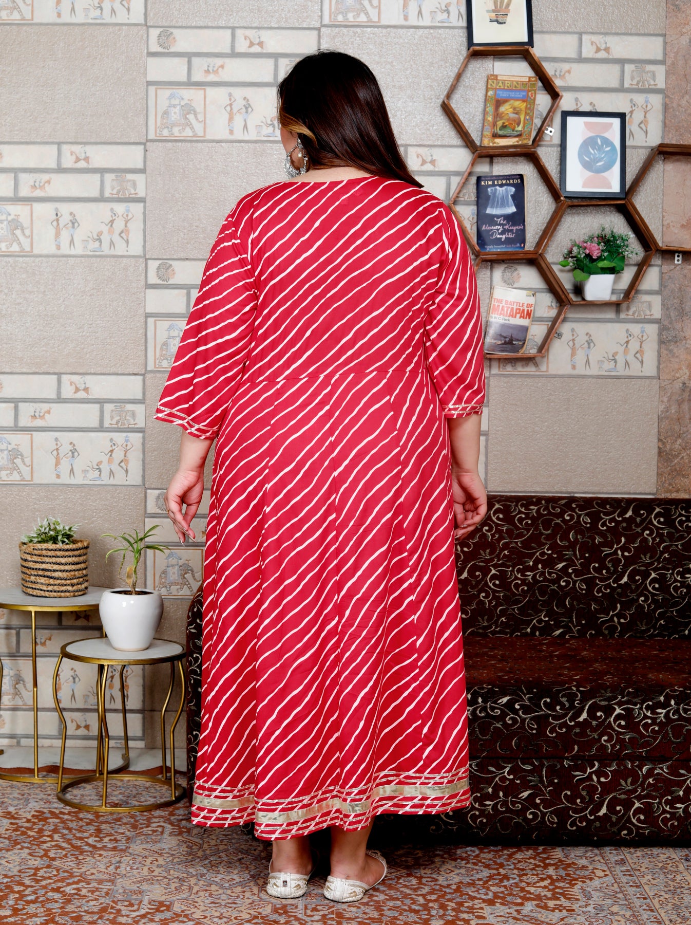 Plus Size Red Cotton Blend Lahariya Print Gown (B29-Red)