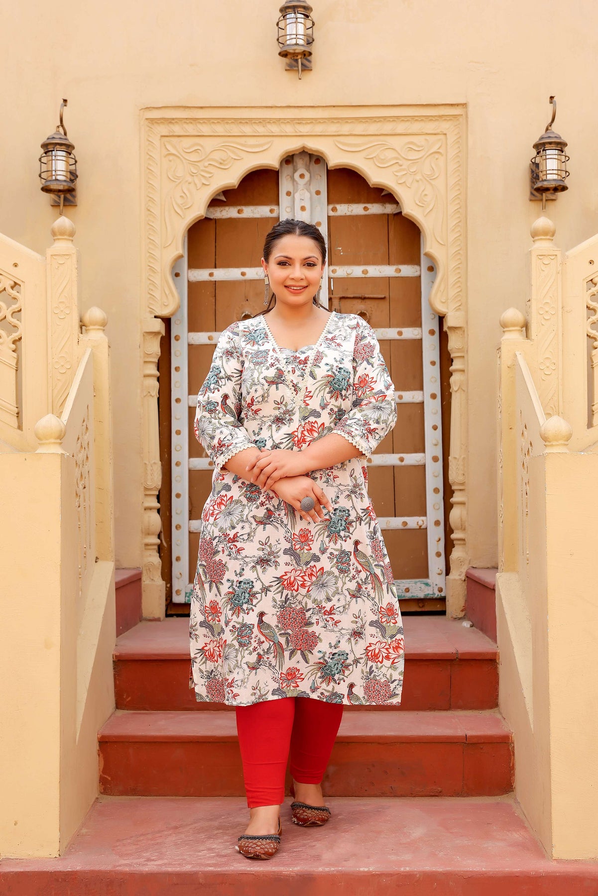 This plus size kurti is all about comfort without compromising style. Made from high-quality cotton, it's a breathable and soft outfit that suits every season. The 3/4 sleeves and relaxed silhouette give you a graceful ethnic appearance.